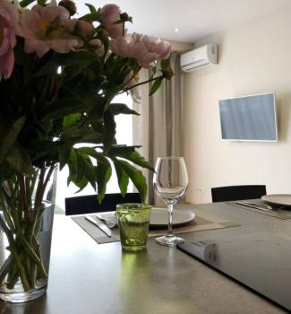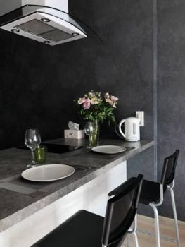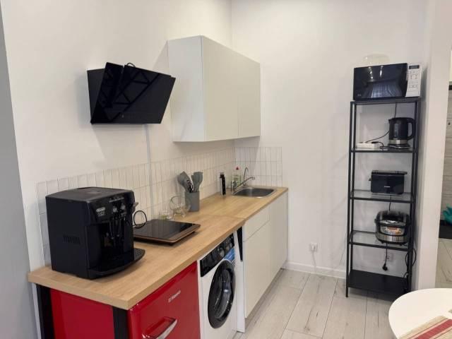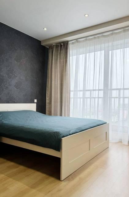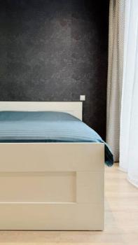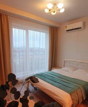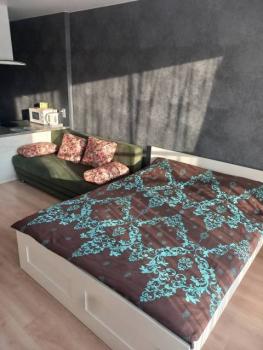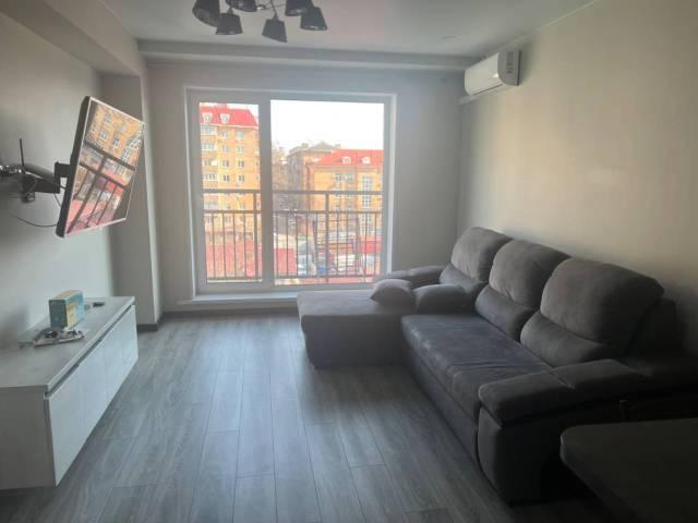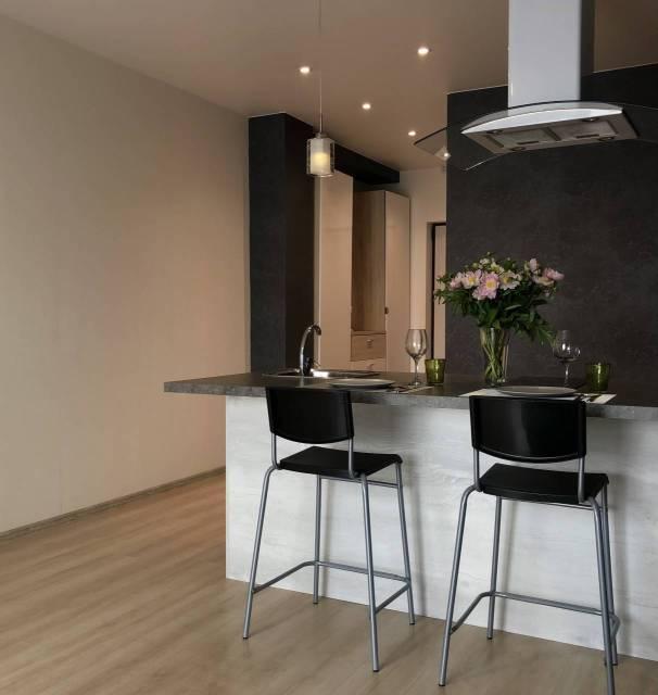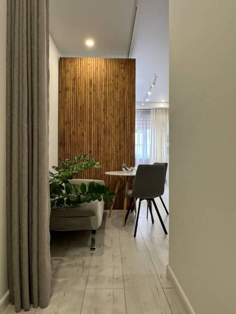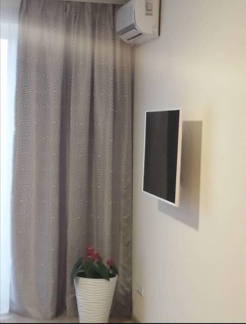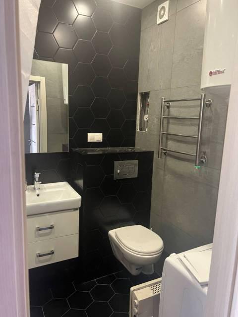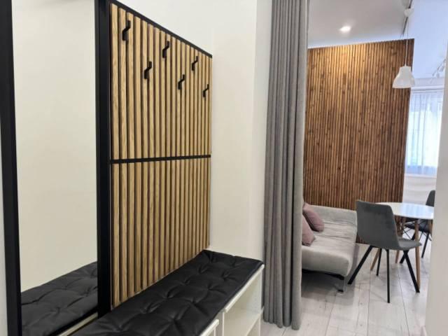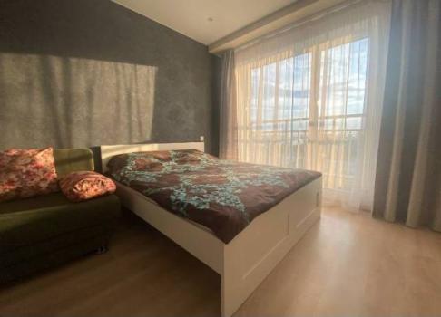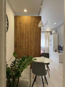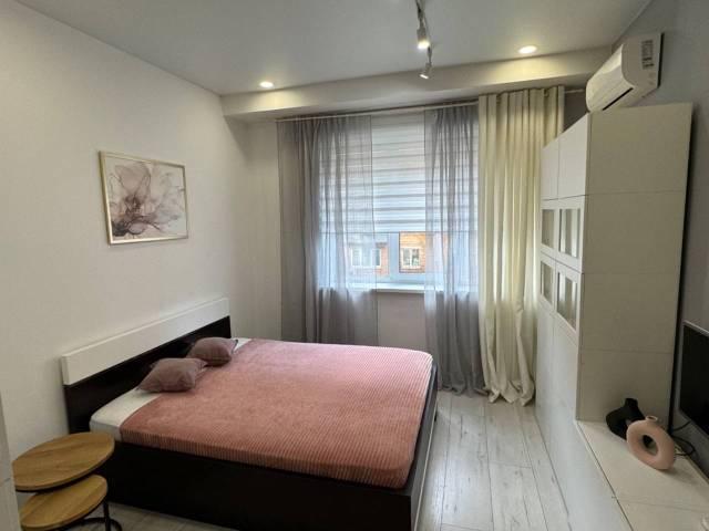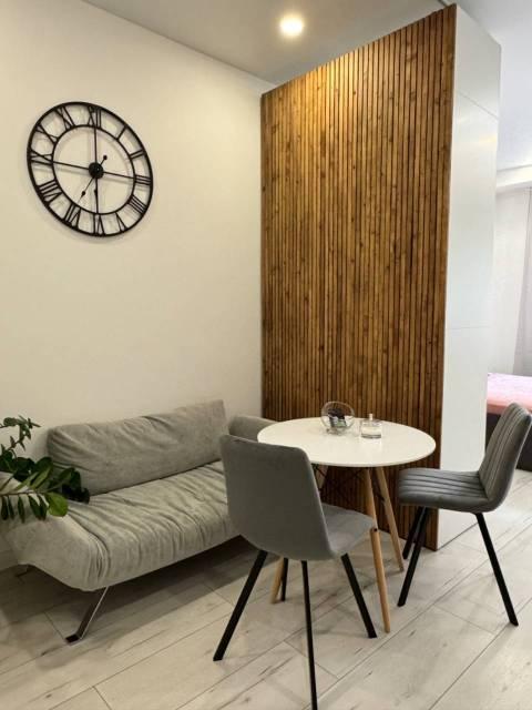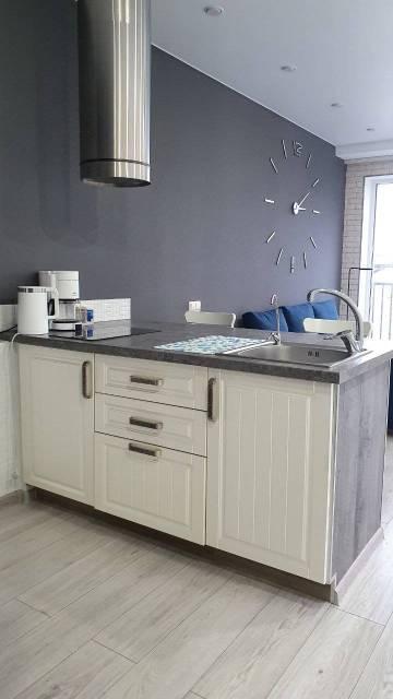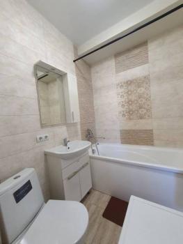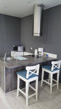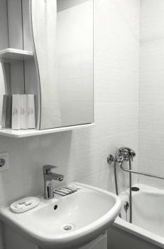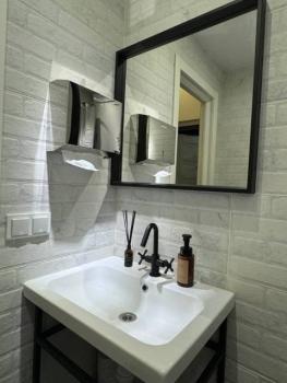 В квартире есть все необходимое для комфортного проживания. Просторная жилая зона объединена с кухней, где установлена современная мебель и техника: посудомоечная машина, холодильник, телевизор, кондиционер и стиральная машина. Санузел совмещенный и оборудован душевой кабиной.