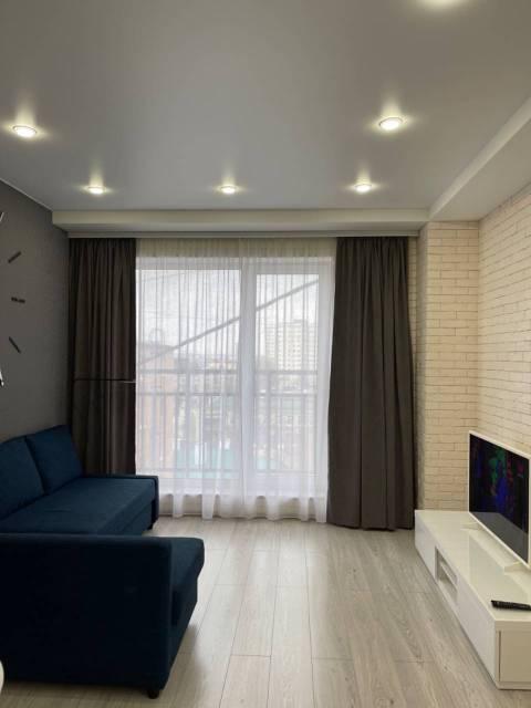 Особенности: Ламинат, Натяжной потолок, Пластиковые окна, Софиты, Тёплый пол во всей квартире