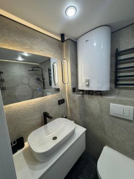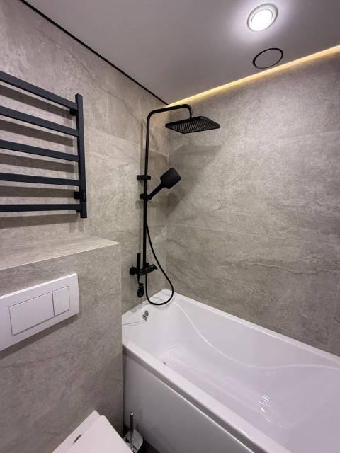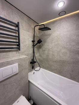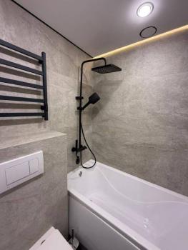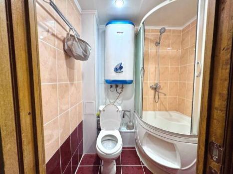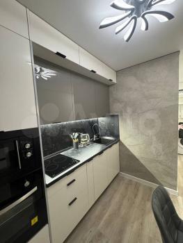 Кухня оборудована электрической плитой, есть микроволновка и набор посуды. Совмещенный с/у с ванной отделан керамогранитом. По срокам аренды можно договориться.