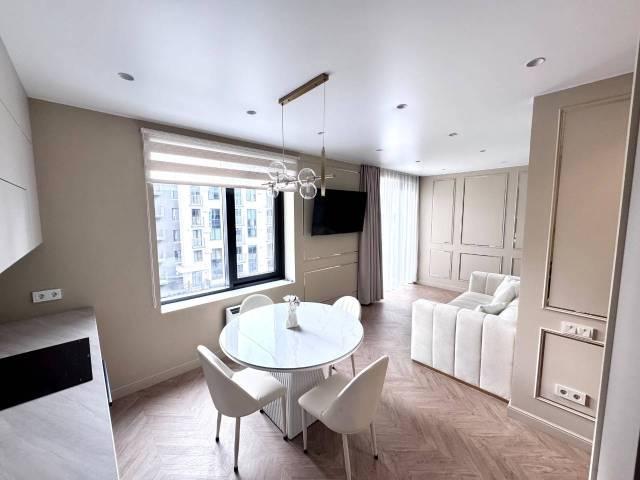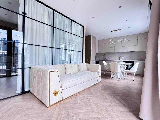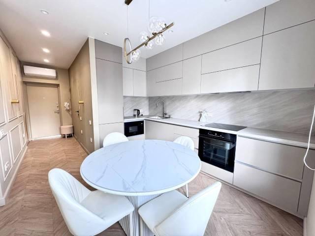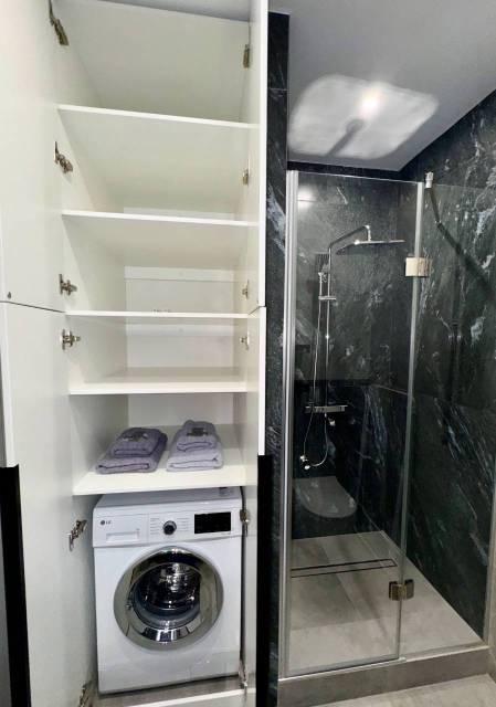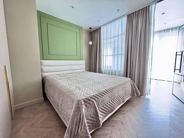 Теплый пол во всей квартире. Кондиционер. Просторная светлая кухня-гостиная с выходом на балкон. Абсолютно вся мебель и техника новые. Кухня укомплектована всей посудой для комфортного проживания. Комплект новых полотенец и нового постельного белья. В прихожей, спальне и сан.узле встроенные шкафы с местом под хранение.
