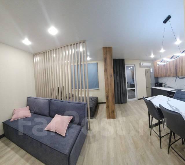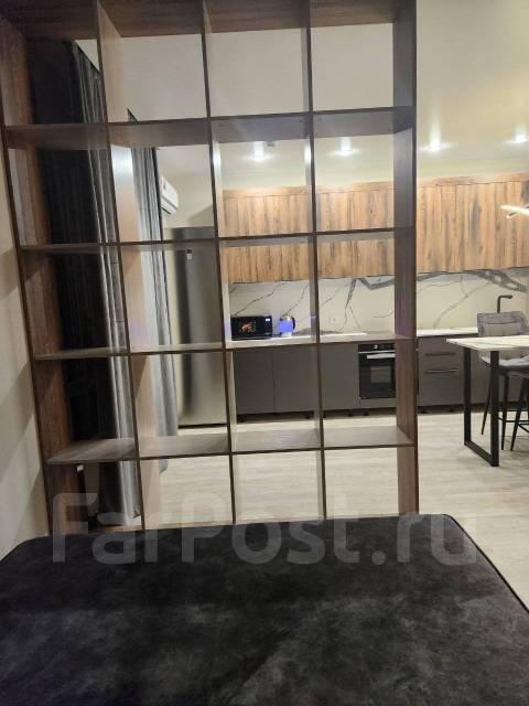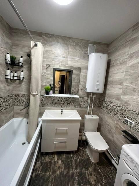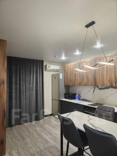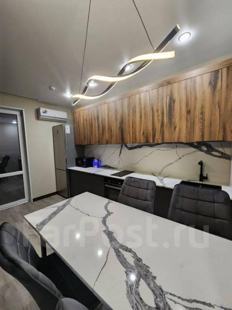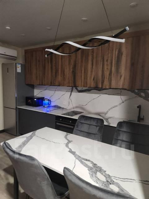 Особенности: Квартира, с новой мебелью изготовленная по индивидуальному проекту. Столешница и барная стойка из кварца. 2х-спальняя кровать, с подъемным механизмом. Большой, удобный раскладной диван, так же с отделом для хранения белья. Вместительный встроенный гардероб. Кабельное тв и интернет проведен.
