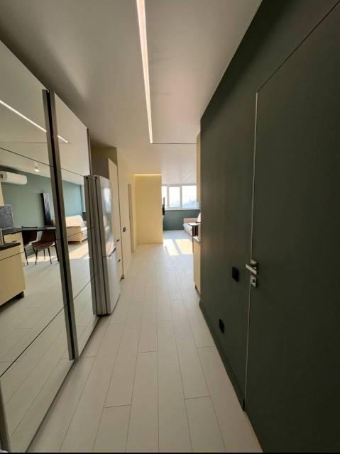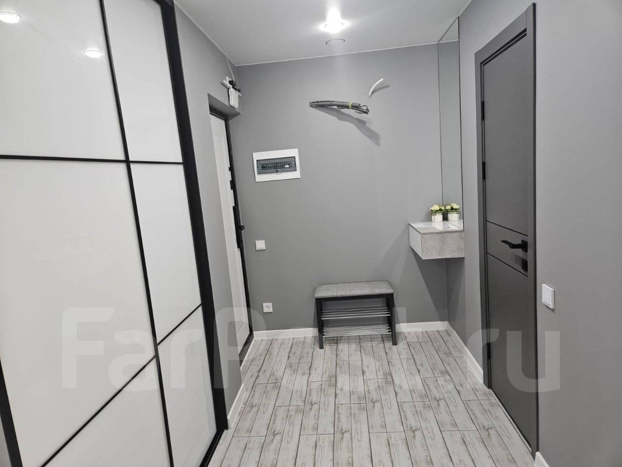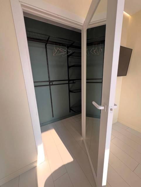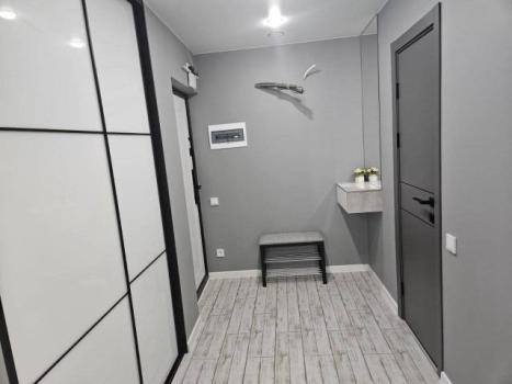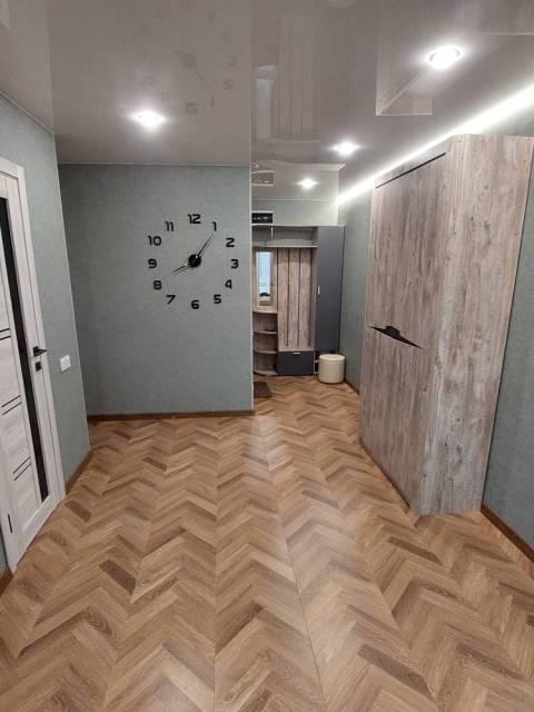 Особенности: Гардеробная, Железная дверь, Ламинат, Межкомнатные двери, Натяжной потолок, Пластиковые окна, Софиты, Стены выровнены, Тёплый пол