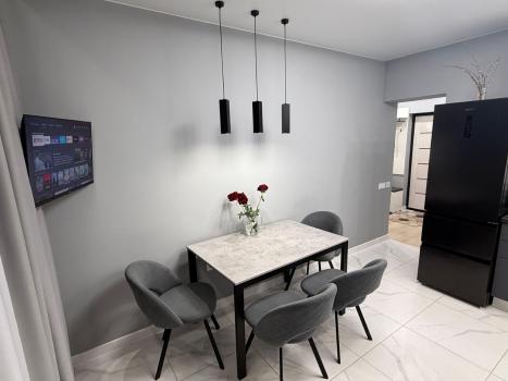 Квартира оформлена в дизайнерском стиле, что создаёт атмосферу уюта и комфорта. В комнатах и на кухне имеется вся необходимая мебель. Для вашего удобства установлены кондиционер, холодильник, посудомоечная и стиральная машины, а также телевизор. Ванная комната оборудована полноценной ванной. Из окон открывается вид на улицу и во двор, а на лоджии можно насладиться свежим воздухом.