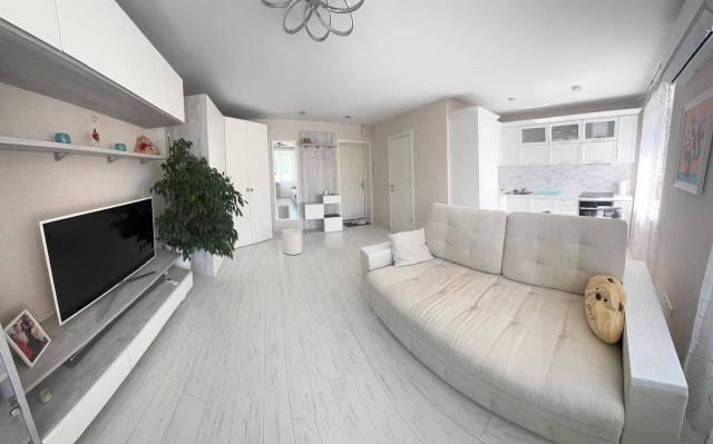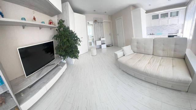 Выполнен хороший ремонт, есть кондиционер, теплые полы в ванной и прихожей.