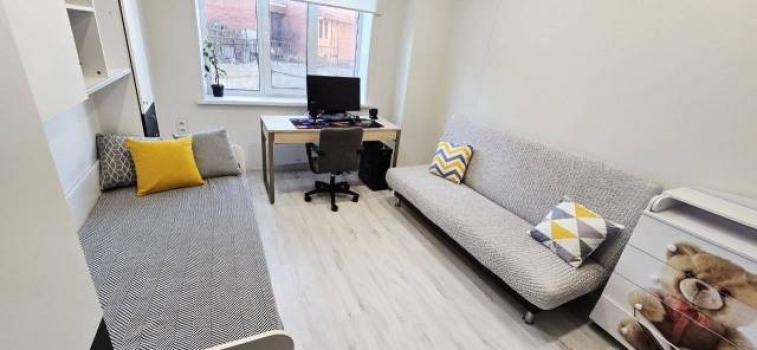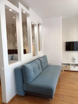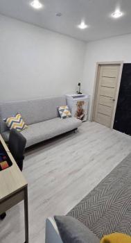 - Современный ремонт: натяжные потолки, ламинат, теплый пол, пластиковые окна, софиты, выровненные стены.