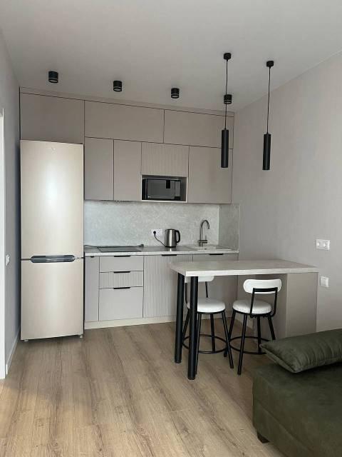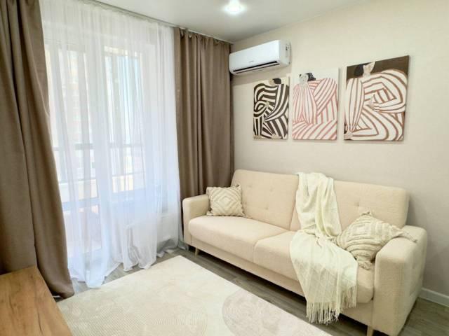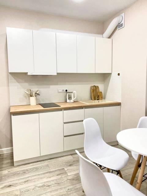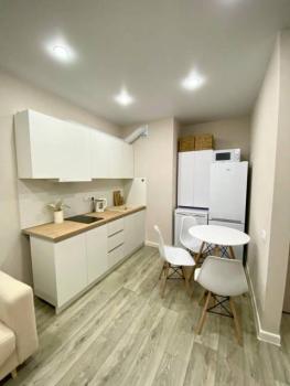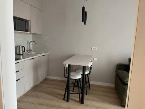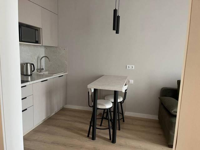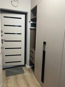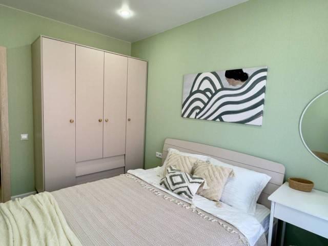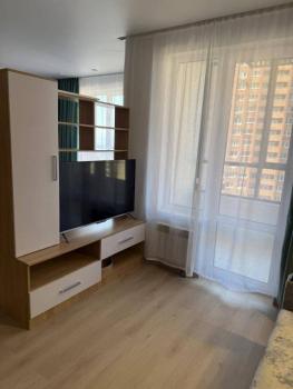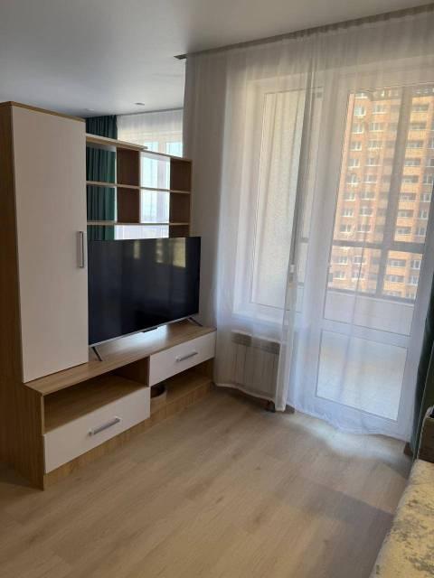 Мебель: В квартире есть вся необходимая мебель: шкаф для одежды и обуви в прихожей, в комнате: двуспальная кровать, шкаф, туалетный столик с зеркалом; в кухне-гостиной диван (раскладной), тумба под телевизор, кухонный гарнитур, стол, стулья