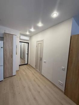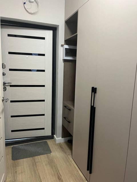 Особенности: Гардеробная, Железная дверь, Натяжной потолок, Пластиковые окна, Софиты, Стены выровнены, Тёплый пол, Ламинат, Межкомнатные двери