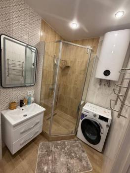 В квартире есть все необходимое, мебель, техника, бытовые принадлежности, имеются столовые приборы, посуда, сковороды, кастрюли, разделочные доски, терка и прочая кухонная утварь, гладильная доска, переносная сушилка, постельные принадлежности, установлен теплый пол в ванной. Дом новый.