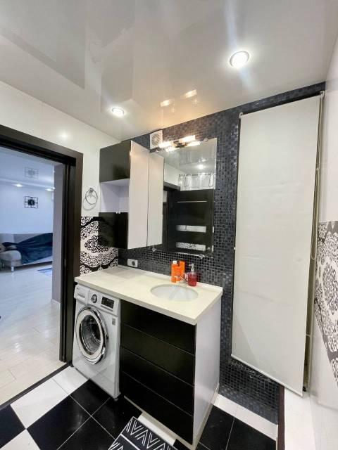 Особенности: Межкомнатные двери, Натяжной потолок, Тёплый пол, Пластиковые окна, Ламинат, Железная дверь, Софиты, Гардеробная, Стены выровнены, Решётки на окнах