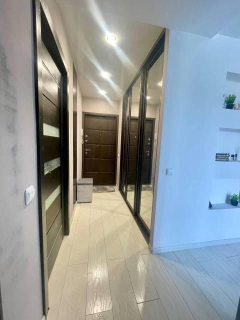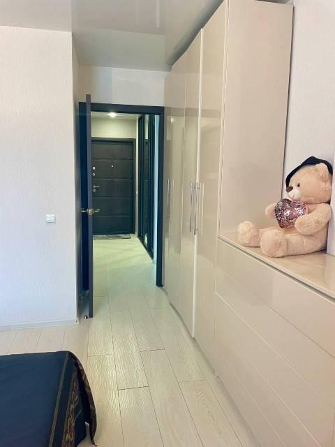 Особенности: Гардеробная, Железная дверь, Межкомнатные двери, Натяжной потолок, Паркет, Пластиковые окна, Софиты, Стены выровнены, Тёплый пол