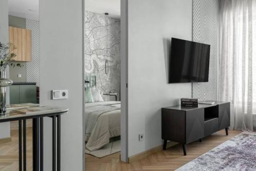 Особенности: Гардеробная, Натяжной потолок, Межкомнатные двери, Пластиковые окна, Софиты, Стены выровнены, Тёплый пол