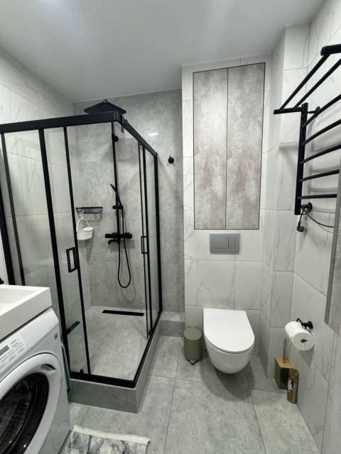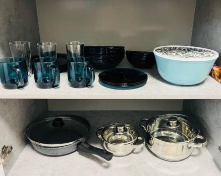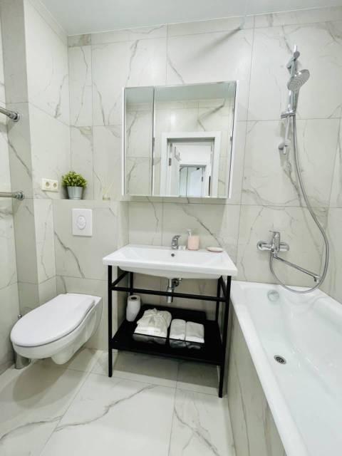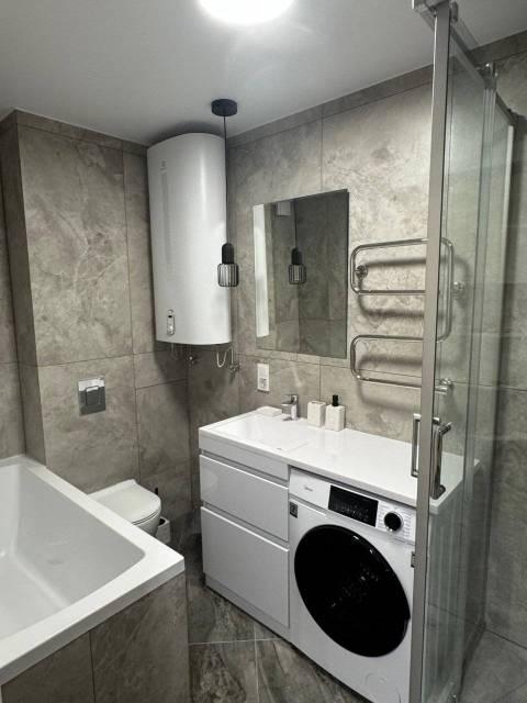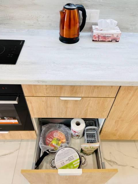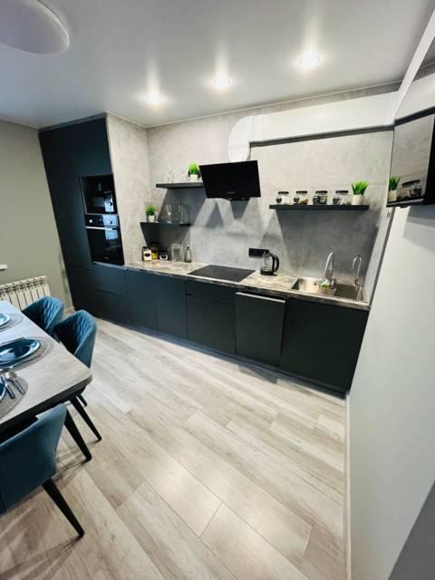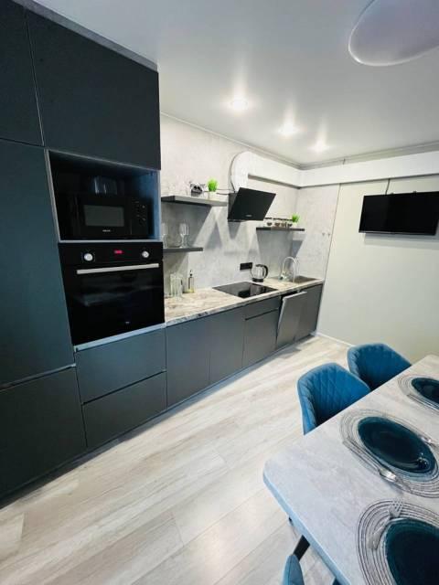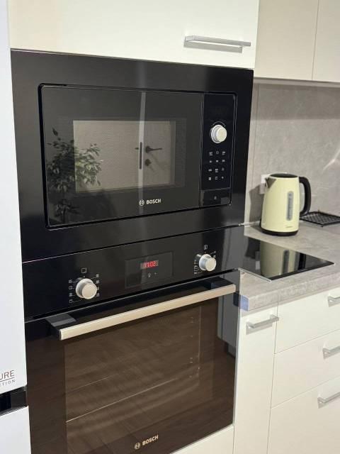 Техника: В квартире есть всё необходимое для комфортного проживания: Вытяжка, Кондиционер, Посудомоечная машина, Чайник, Холодильник, Два телевизора, Титан, Стиральная машина, Утюг, Духовой шкаф, Стеклокерамическая плита, Микроволновая печь.