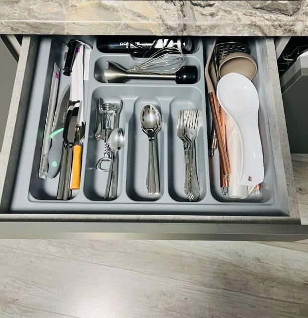 Кухонный гарнитур и вся техника подобрана со вкусом и вниманием к качеству, а аксессуары (картины, зеркала) добавляют дополнительный шарм и уют.