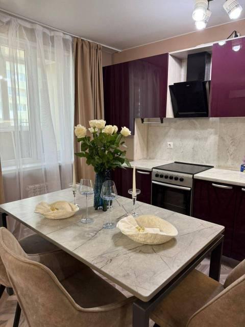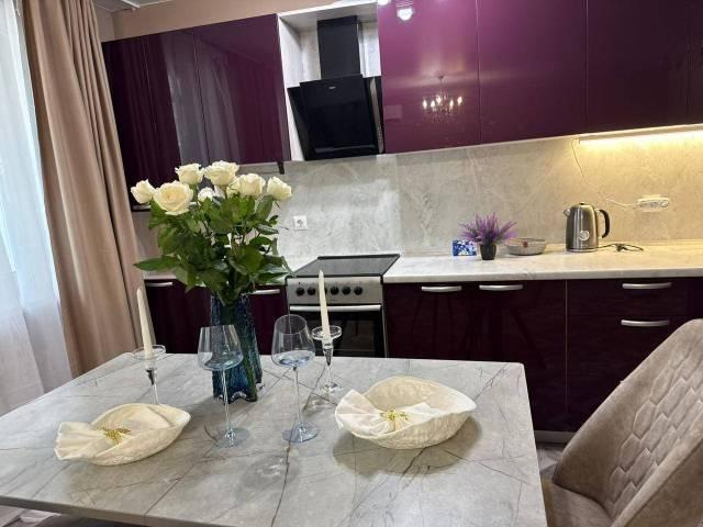 Квартира только после ремонта в новом современном доме, оборудованном несколькими лифтами, большая парковка, видеонаблюдение. В квартире есть всё необходимое ,новая мебель, бытовая техника.Диван раскладывается+ кресло-кровать. Подушки ,одеяло,вся необходимая посуда.