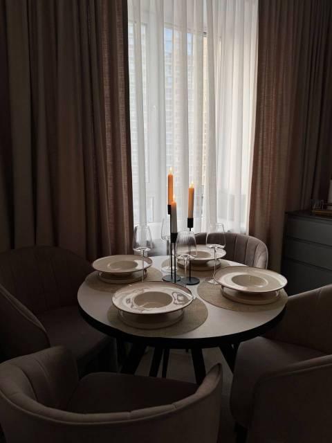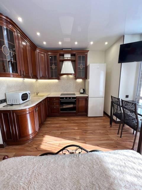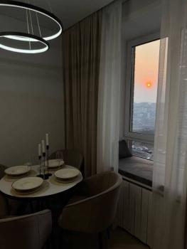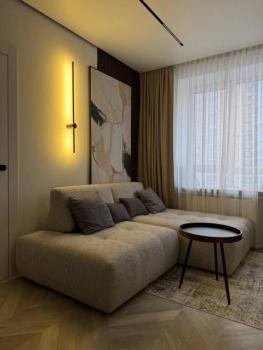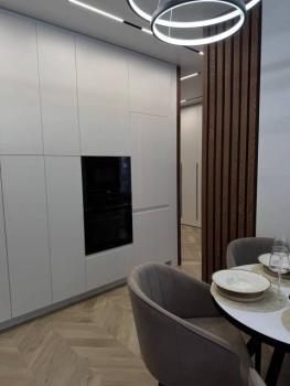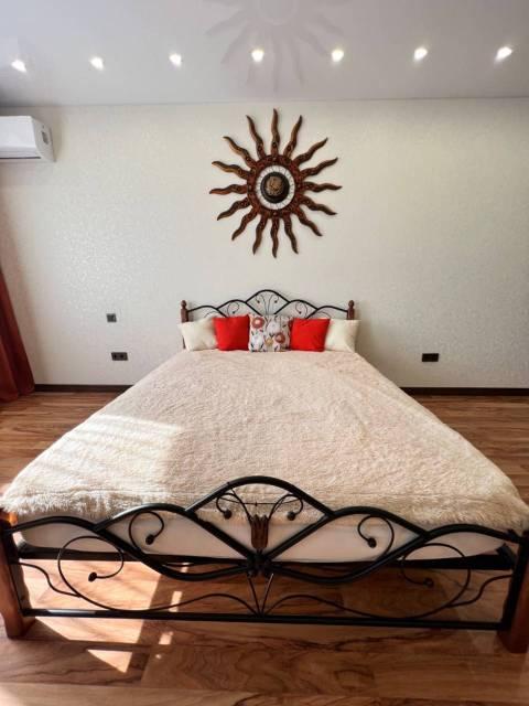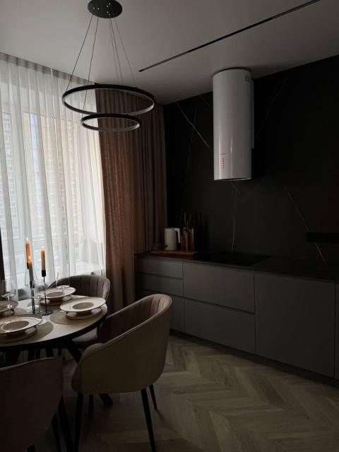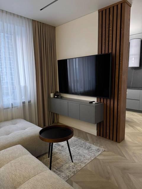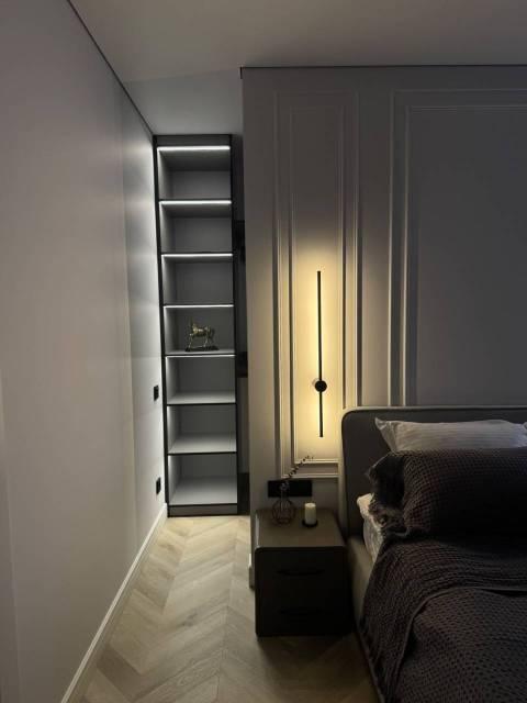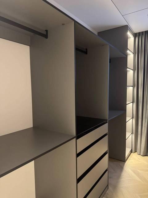 Просторная и невероятно красивая квартира, отдельная кухня с обеденным столом, гостиная с удобным диваном и телевизором Sony, большое количество мест для хранения, двуспальная кровать, гардеробная, рабочее место, есть сейф.
