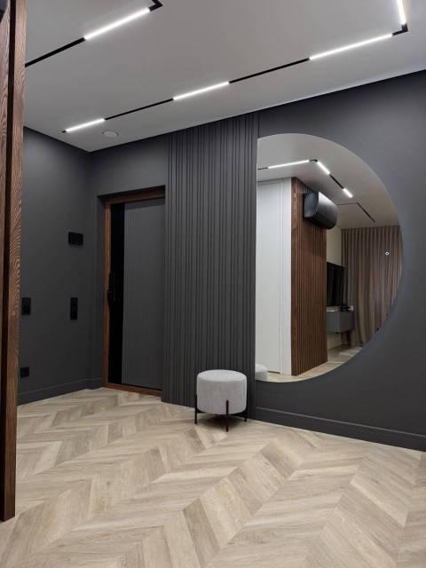 Особенности: Гардеробная, Ламинат, Пластиковые окна, Натяжной потолок, Стены выровнены, Тёплый пол, Софиты