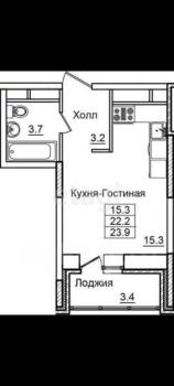 Особенности: Предлагаем в аренду квартиру-студию с большой лоджией в новом доме.