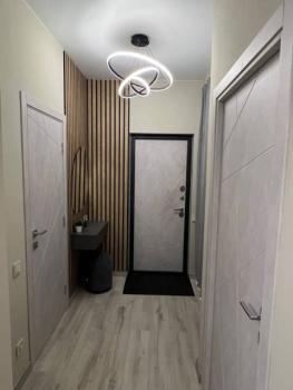 Особенности: Гардеробная, Ламинат, Натяжной потолок, Межкомнатные двери, Пластиковые окна, Тёплый пол, Софиты, Стены выровнены