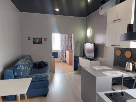 В квартире имеются 2 комнаты ( спальня и кухня-гостинная), гардероб, ванная, теплая лоджия с витражным остеклением.