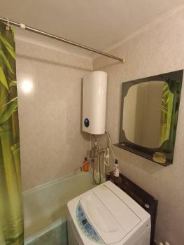 В ванной комнате бойлер (80 литров). Стиральная машинка. Чугунная ванна длинной 190см. Отделка ванны выполнена итальянским кафелем. Натяжной потолок.