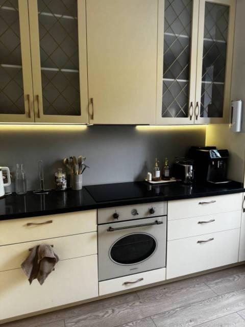 Техника: Холодильник, духовой шкаф встроенный, стеклокерамическая варочная панель, вытяжка встроенная, чайник, титан, стиральная машина с сушкой, wifi роутер, пылесос, кондиционер