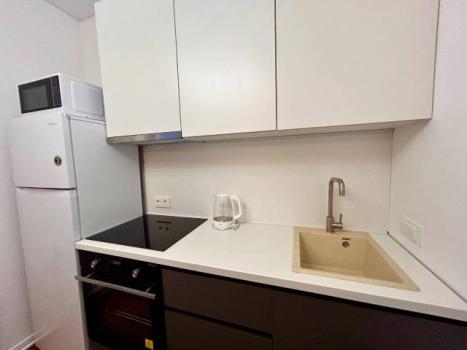 санузел - раздельный, мебель - кухня, хранение одежды, спальные места, кондиционер, холодильник, плита, микроволновка, стиральная машина, водонагреватель, телевизор.