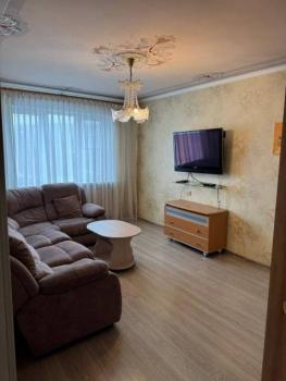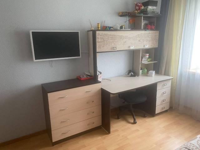 Есть все необходимое для комфортного проживания. Вид из окон на детскую площадку, где всегда можно смотреть за играющими детками! За домом есть прекрасный парк с белками!, Диван, Журнальный столик, Двуспальная кровать, Кухонный гарнитур, Обеденный стол, Стенка, Шкаф-купе,