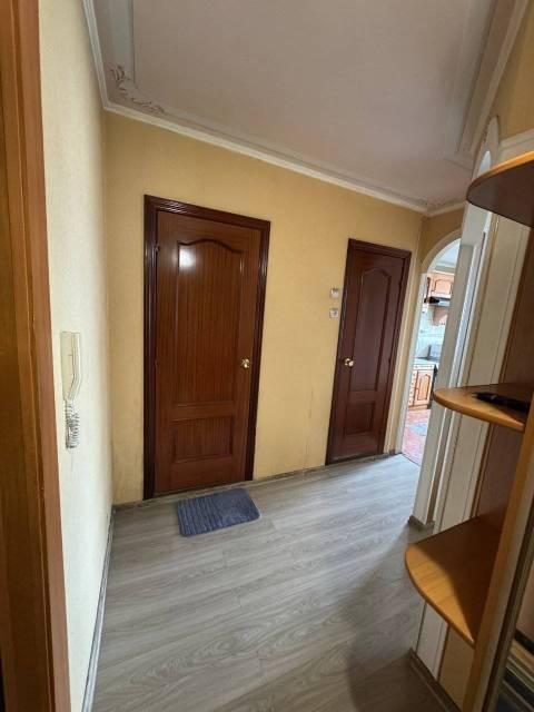 Железная дверь, ламинат, натяжной потолок, пластиковые окна, стены выровнены.