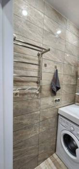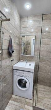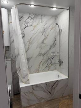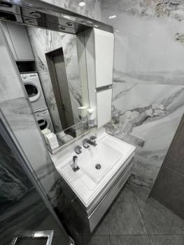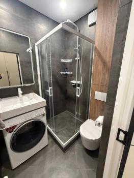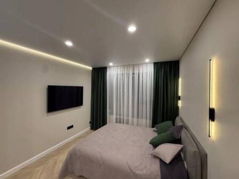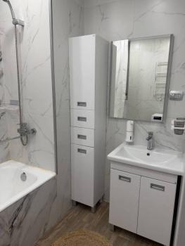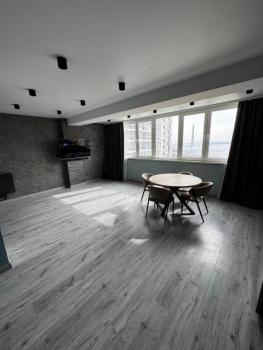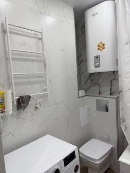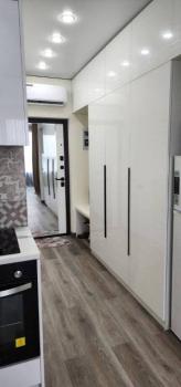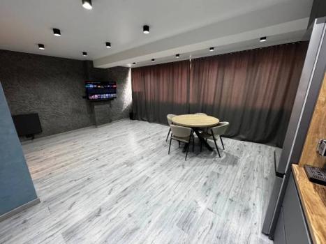 Особенности: Железная дверь, Натяжной потолок, Тёплый пол, Стены выровнены, Софиты, половое покрытие кварц винил, витражное остекление , инсталяция , душевой угол,WI FI.