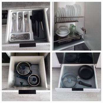 -Посуда для приготовления пищи, фен, утюг, сушка, гладильная доска.