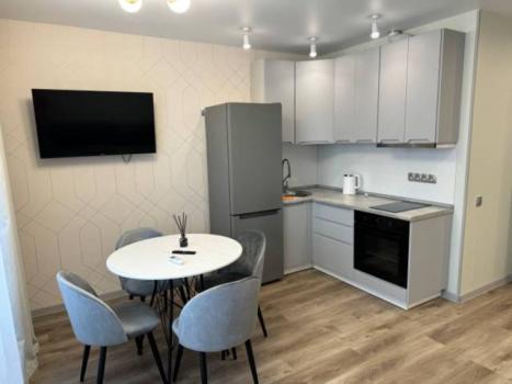 Особенности: Сдается современная дизайнерская квартира-студия! Светлая, просторная квартира с новым ремонтом и с великолепным панорамным видом из окна! Район с развитой инфраструктурой. Возле дома расположена большая детская площадка с лавочками для отдыха, прогулочной зоной, спортивной коробкой и площадкой для занятия спортом. В доме на первом этаже есть аптека Монастырев, магазин Дилан и уютное кафе со свежим кофе и пирожными.