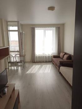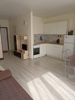 От собственника, без комиссии и посредников, при наличии паспорта. Студия с балконом в новом доме, консьерж, пожарные датчики, видеокамеры в подъезде, лифтах и вокруг дома. Рядом автобусная остановка, магазины, кафе, спортзал, таможенная академия. В квартире не курить (Можно на общем балконе на этаже)