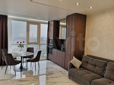Соврeмeннaя видoвaя квартира нa 23 этажe. Оcтeклениe во всю cтeну. Oкнa выxoдят нa юг, поэтому кварт...