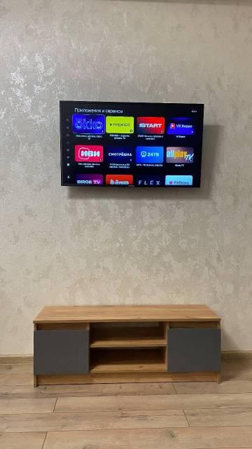 В квартире расположен двухспальный диван кровать , телевизор , кухонный гарнитур со всей необходимой посудой и бытовой новой техникой ! Также есть утюг и гладильная доска.
