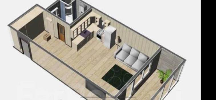 Мебель: Двуспальная кровать, Диван, Кухонный гарнитур, Барная стойка, Гардеробная система