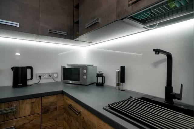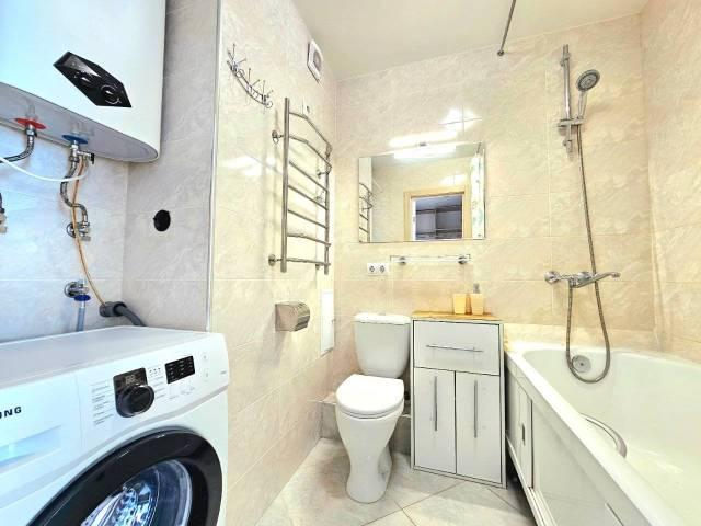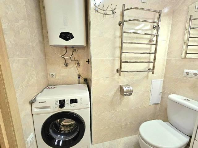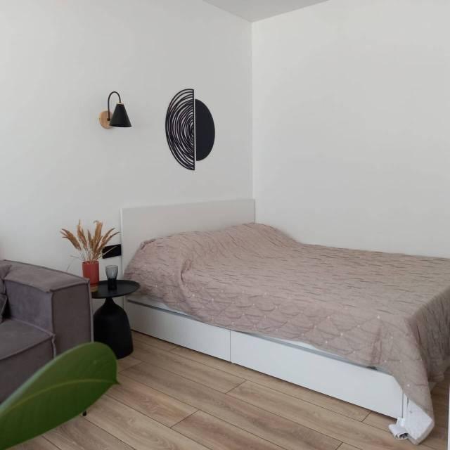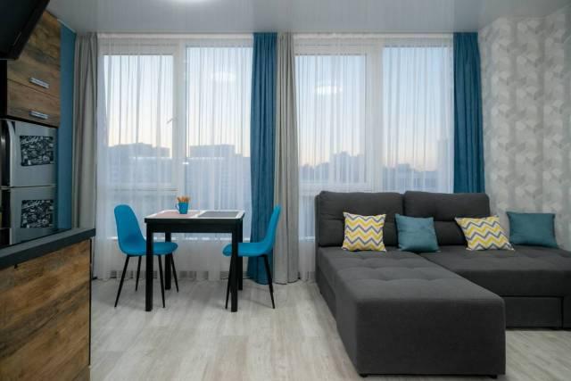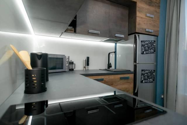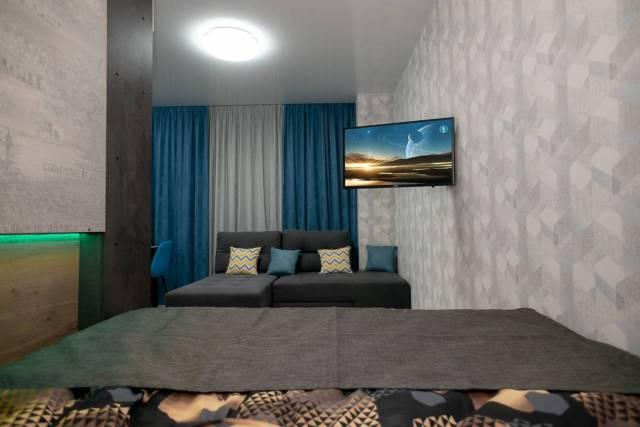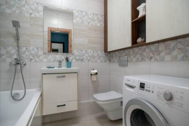 Особенности: Гардеробная, Ламинат, Межкомнатные двери, Натяжной потолок, Пластиковые окна, Софиты, Стены выровнены, Тёплый пол
