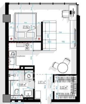 Мебель: Диван, Кухонный гарнитур, Обеденный стол, Шкаф