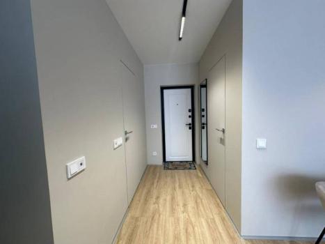 Особенности: Гардеробная, Железная дверь, Ламинат, Межкомнатные двери, Натяжной потолок, Пластиковые окна, Софиты, Стены выровнены, Тёплый пол