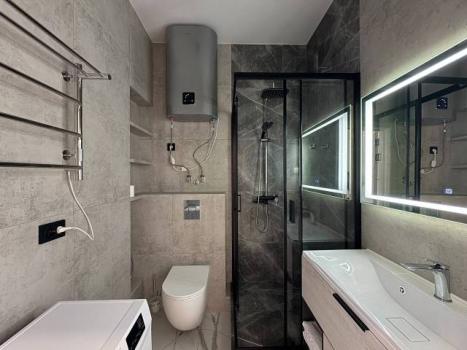 Особенности: Тёплый пол, Стены выровнены, Софиты, Пластиковые окна, Натяжной потолок, Ламинат, Железная дверь