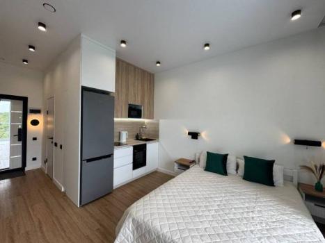 Особенности: Предлагаем уютную и теплую студию в районе с хорошо развитой инфраструктурой. Квартира-студия в новом ЖК Атмосфера .Сделан новый ремонт, со всем наполнением в сдержанном цветовом решении, что добавляет ощущение пространства и стиля. Квартира полностью готова для заселения и проживания (в квартире никто не жил).