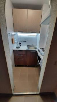 санузел - совмещённый, мебель - кухня, хранение одежды, спальные места, кондиционер, холодильник, плита, микроволновка, стиральная машина, водонагреватель, телевизор.