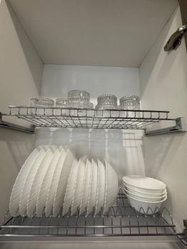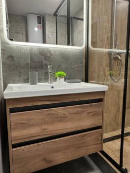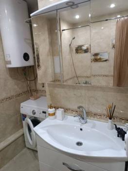 Техника: Кондиционер, вытяжка, микроволновая печь, двукомфорочная стеклокерамическая плита, стиральная машина, титан, большой телевизор с подсветкой, двукамерный холодильник, чайник, утюг с гладильной доской, фен, э/полотенцесушитель+раскладная сушилка д/белья