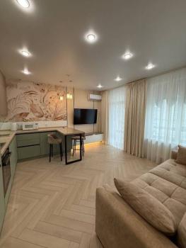 Требования: Новая квартира премиум-класса с дизайнерским ремонтом в приятных тонах. Ремонт выполнен из качественных, дорогостоящих материалов, завершен в августе 2025 г., куплена и отремонтирована не под сдачу, для себя, все продумано до мелочей, сдается временно. Есть вся необходимая бытовая техника, текстиль, посуда. Диван Lazurit с независимым пружинным блоком для комфортного сна, для дополнительной мягкости есть топер (дополнительный матрац 5 см толщиной).